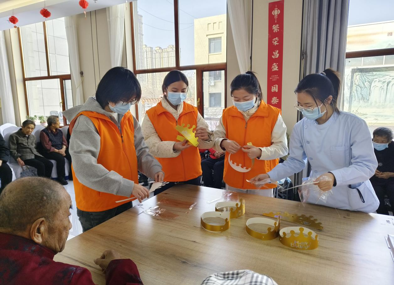 在活动中,党员们与养老服务中心工作人员一同为部分老人庆祝生日,亲手制作生日帽,齐唱生日歌,温馨的氛围感染了在场的每一个人。恰逢“三八”国际妇女节,党员们还为院内的女性长者送上红色围巾,表达敬意与祝福。随后,员工代表献上歌曲《送你一朵小红花》,将现场气氛推向高潮。