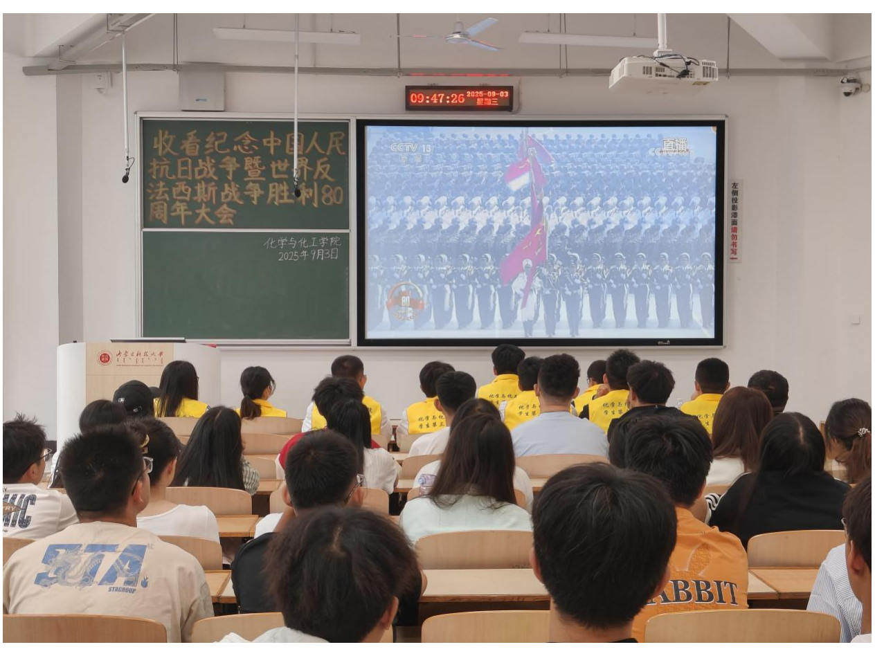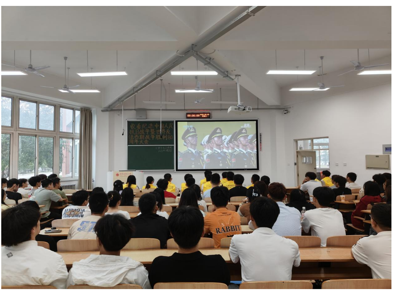 为铭记历史,致敬英雄,缅怀革命先烈,弘扬伟大抗战精神,增强师生的民族自豪感与使命感,9月3日上午9时,m88官网员工第三党支部全体党员及入党积极分子于二教A103进行“收看纪念中国人民抗日战争暨世界反法西斯战争胜利80周年大会”。