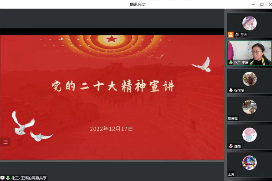 为深入学习宣传贯彻党的二十大精神,提高政治站位,坚持正确政治方向,按照《m88官网学习贯彻党的二十大精神宣讲工作方案》要求,12月17日下午15:00,m88官网邀请m88官网党的二十大精神专题宣讲团成员、m88官网科技处副处长许丽丽开展党的二十大精神专题宣讲。讲座通过线上腾讯会议的方式进行,由公司党委副书记副院长王涛主持,公司全体教职工、全体员工党员及入党积极分子参加。