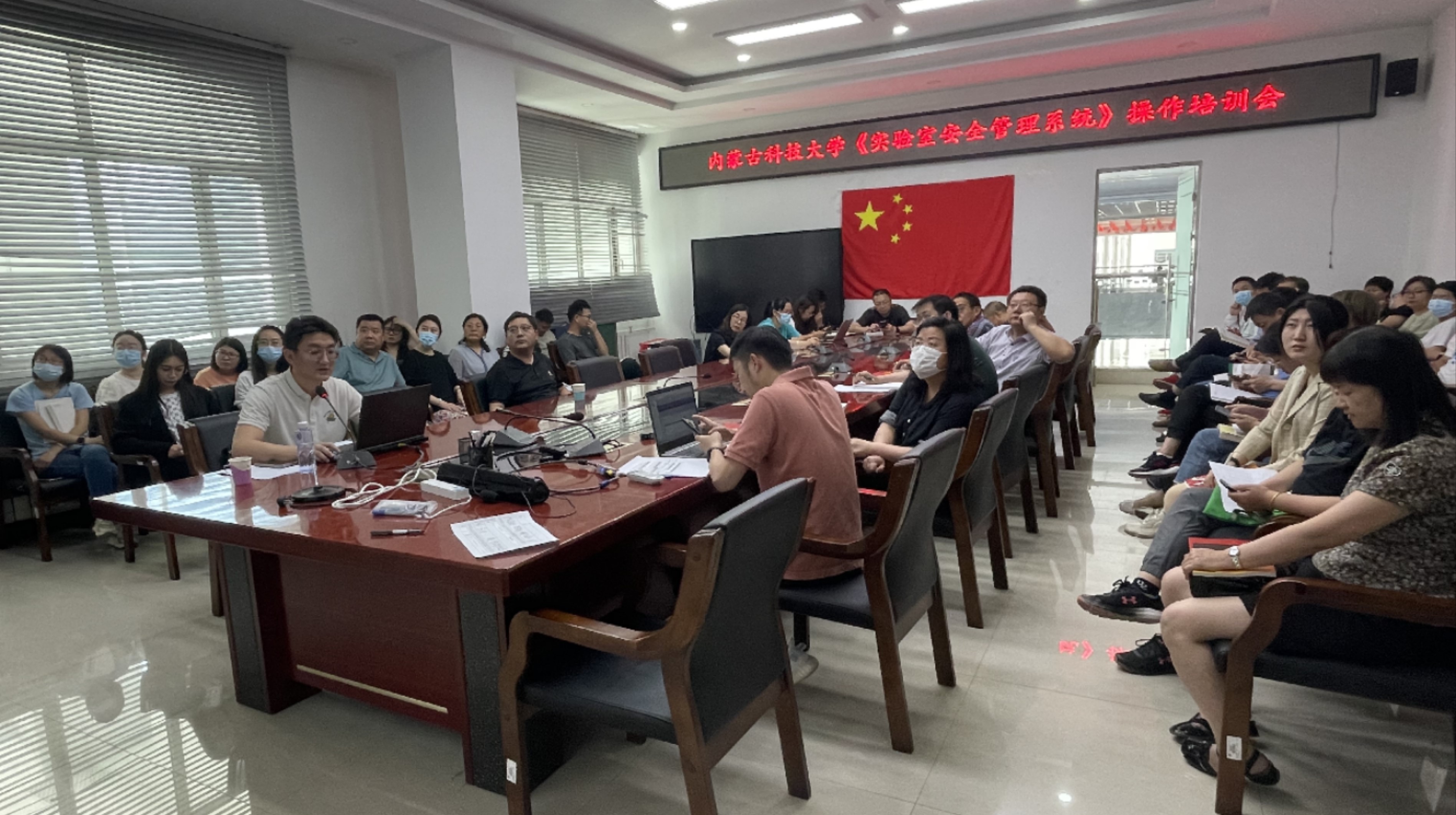 为进一步提升m88官网实验室安全管理信息化水平,6月8日下午,m88官网实验室与设备管理处负责人张利文一行4人在逸夫楼E202会议室开展了实验室安全管理系统使用培训。公司领导班子成员、各系部主任及实验室负责人参加了本次培训。