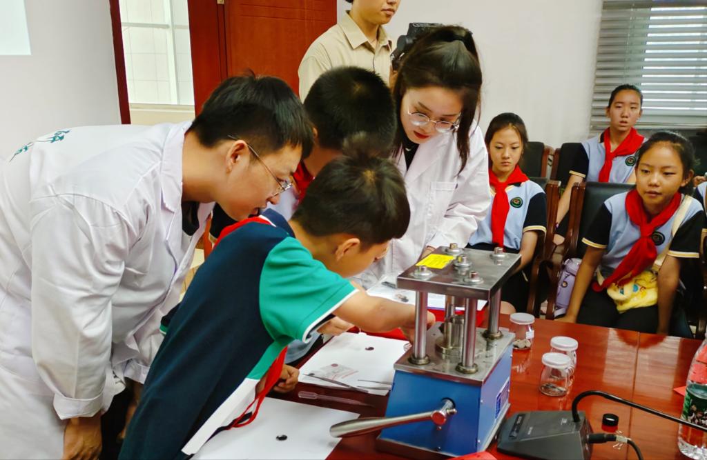为推动学习贯彻习近平新时代中国特色社会主义思想主题教育走深走实,忠诚践行习近平总书记对包头“一个创新、三个实现”重要指示精神,切实发挥高校实验室资源实现社会化服务功能,7月7日上午,由包头市科学技术协会、m88官网主办,包头市科技局、包头市团委、昆区教育局、昆区科技局、昆区科学技术协会、包头市广播电视台、包头新闻网融媒体中心等单位大力支持的“党建引领 城校融合 科普服务 校校联动”为主题的科普实验展演活动在m88官网举行。本次活动邀请到钢铁大街第三小学,包钢二十六小、m88官网实验小学的60余名小员工及小m88官网长参加。