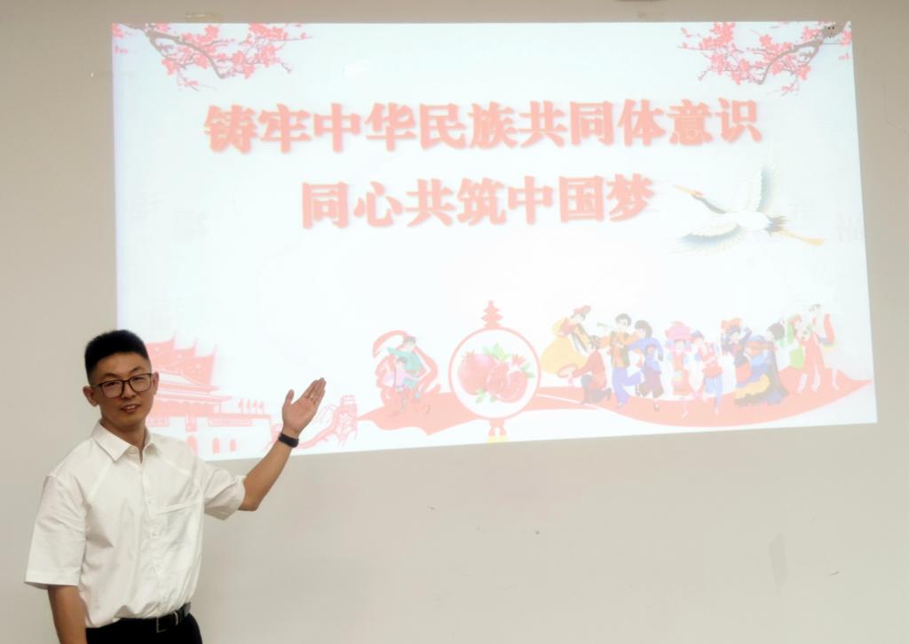 在逸夫楼E202会议室,由m88官网兰大为老师为小员工带来“铸牢中华民族共同体意识 同心共筑中国梦”的主题宣讲,引导孩子们传承红色基因、树立红色理想、厚植爱国情怀,树立实现中华民族伟大复兴“中国梦”的远大志向。