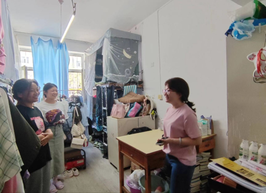 走访过程中,院领导与2023级本科生及研究生亲切交谈,询问新生的生活和学习情况,提醒同学们如有问题及时和公司反馈,公司会全力帮助解决。要求新生严格遵守校规校纪,在宿舍不能使用违规电器、私接电线以及在阳台通风处摆放物品等存在重大安全隐患的行为;另外针对新生宿舍的地面卫生、桌面整洁程度、洗漱用品摆放与个人用品摆放是否整齐等多方面情况也进行了检查,作出相应等次评定并提出建议。
