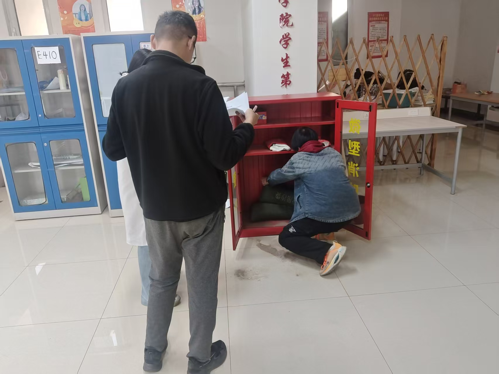实操考核:同日于逸夫楼与明德楼连廊进行,模拟危化品泄漏应急处置,提升实战能力。