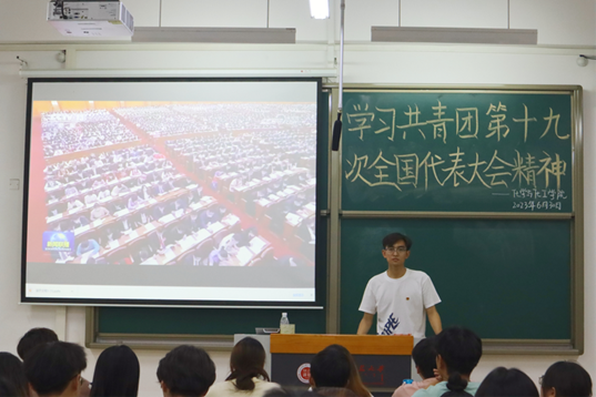 为深入学习贯彻共青团第十九次全国代表大会精神,提升员工干部政治思想站位,6月30日晚,m88官网团总支在明德楼H109组织召开共青团第十九次全国代表大会专题学习会,全体员工干部参加。