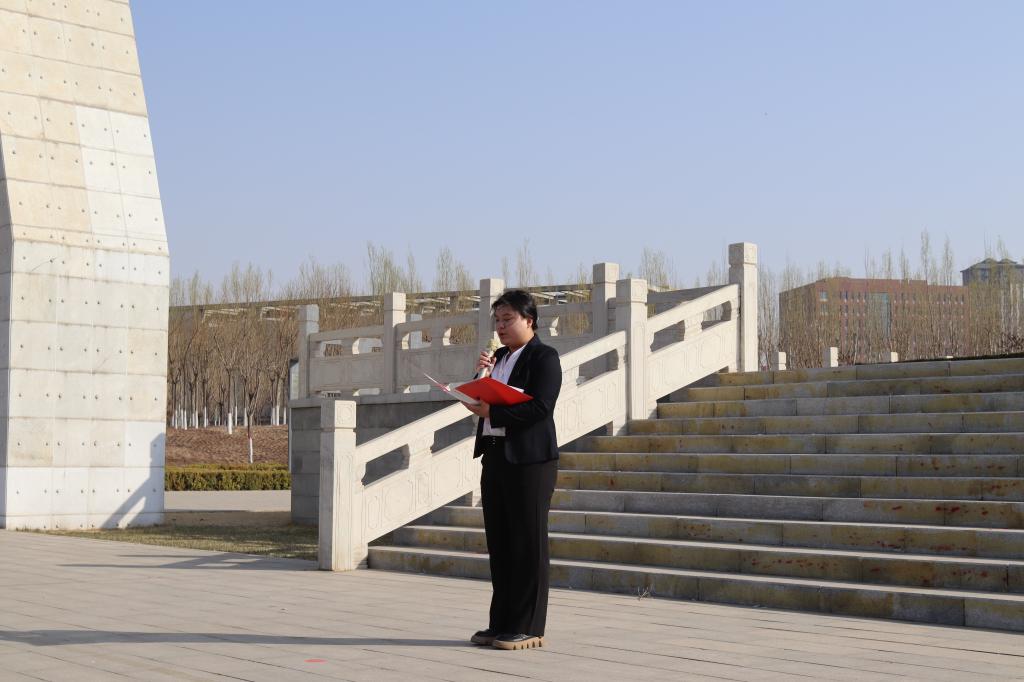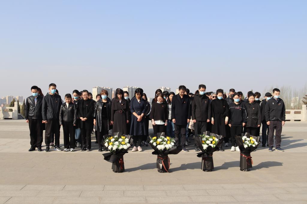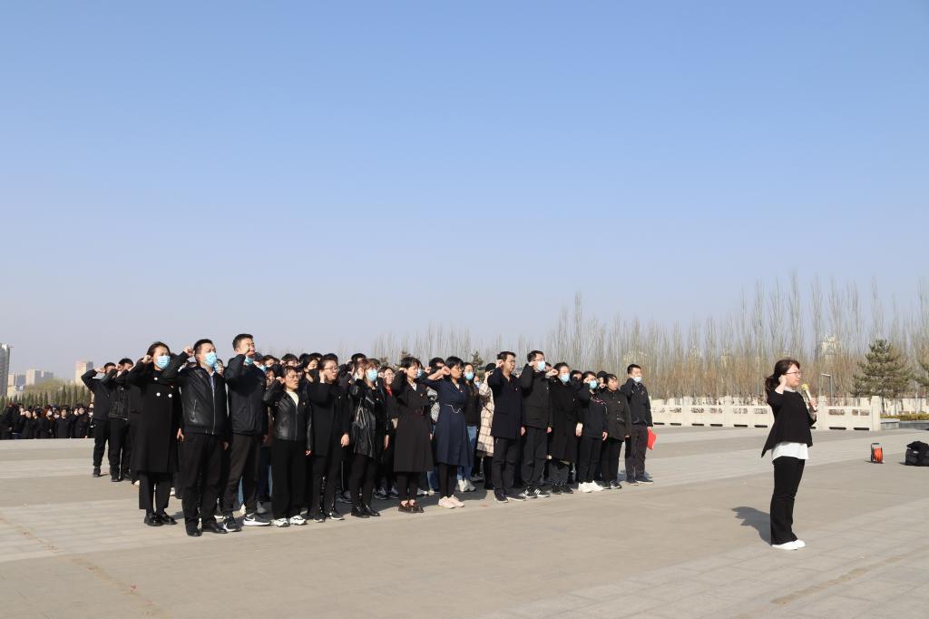 2023年4月1日早晨,m88官网党委组织全院师生党员前往包头市井坪公园开展“缅怀革命先烈,传承红色基因”主题党日活动,全体师生党员110余人参加本次活动。