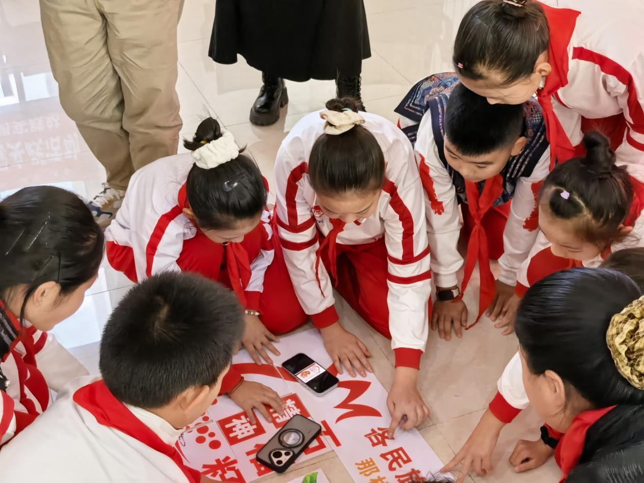 活动中,内科大实验小学的少先队员们以“民族团结小使者”的身份积极参与。在“石榴籽手拉手”环节,孩子们手持板块,齐心协力拼出象征民族团结的图案,在实践中生动体会“各民族像石榴籽一样紧紧拥抱”的深刻内涵。